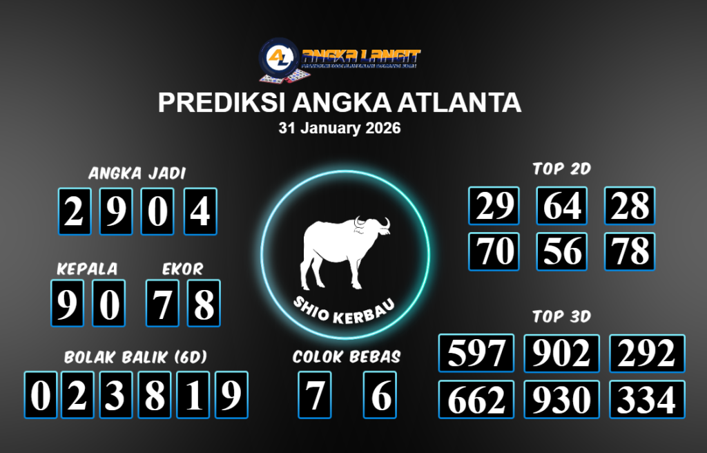 Prediksi ANGKA LANGIT memberikan banyak data akurat untuk togel online, termasuk prediksi Atlanta hari ini. Sebelum anda memasang angka 2D jitu untuk Atlanta hari ini, sebaiknya luangkan waktu untuk mengunjungi forum prediksi Angka Langit. Kami akan membagikan informasi tentang Atlanta hari ini yang sangat layak untuk dicoba. Bagi Anda yang telah membaca prediksi akurat dari Angka Langit untuk Atlanta hari ini dan merasa sesuai, segera pasang angka tersebut di situs togel online Angkatoto138 dan sudah menjadi tempat bermain Anda selama ini.