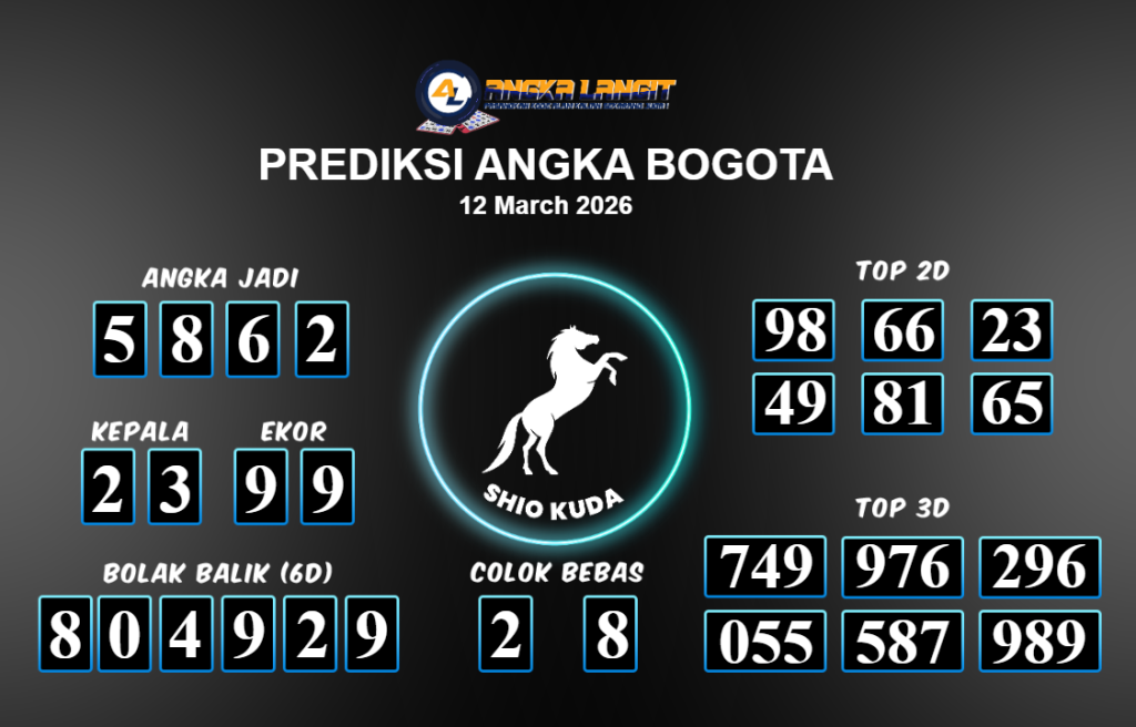 Prediksi ANGKA LANGIT memberikan banyak data akurat untuk togel online, termasuk prediksi Hongkong hari ini. Sebelum anda memasang angka 2D jitu untuk Bogota hari ini, sebaiknya luangkan waktu untuk mengunjungi forum prediksi Bogota. Kami akan membagikan informasi tentang Bogota hari ini yang sangat layak untuk dicoba. Bagi Anda yang telah membaca prediksi akurat dari Angka Langit untuk Bogota hari ini dan merasa sesuai, segera pasang angka tersebut di situs togel online Angkatoto138 dan sudah menjadi tempat bermain Anda selama ini.
