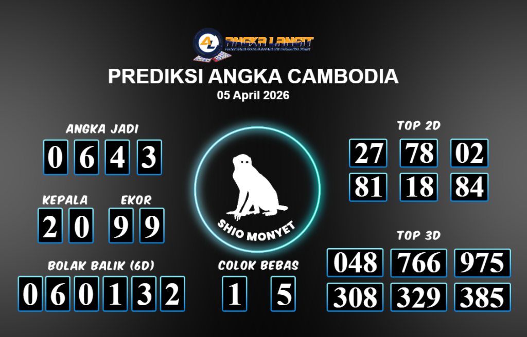 Prediksi ANGKA LANGIT memberikan banyak data akurat untuk togel online, termasuk prediksi Cambodia hari ini. Sebelum anda memasang angka 2D jitu untuk Cambodia hari ini, sebaiknya luangkan waktu untuk mengunjungi forum prediksi Cambodia. Kami akan membagikan informasi tentang Cambodia hari ini yang sangat layak untuk dicoba. Bagi Anda yang telah membaca prediksi akurat dari Angka Langit untuk Cambodia hari ini dan merasa sesuai, segera pasang angka tersebut di situs togel online Angkatoto138 dan sudah menjadi tempat bermain Anda selama ini.