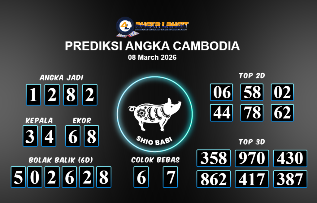 Prediksi ANGKA LANGIT memberikan banyak data akurat untuk togel online, termasuk prediksi Cambodia hari ini. Sebelum anda memasang angka 2D jitu untuk Cambodia hari ini, sebaiknya luangkan waktu untuk mengunjungi forum prediksi Cambodia. Kami akan membagikan informasi tentang Cambodia hari ini yang sangat layak untuk dicoba. Bagi Anda yang telah membaca prediksi akurat dari Angka Langit untuk Cambodia hari ini dan merasa sesuai, segera pasang angka tersebut di situs togel online Angkatoto138 dan sudah menjadi tempat bermain Anda selama ini.