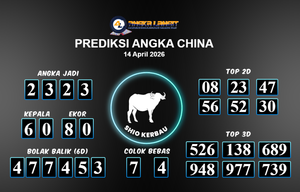 Prediksi ANGKA LANGIT memberikan banyak data akurat untuk togel online, termasuk prediksi China hari ini. Sebelum anda memasang angka 2D jitu untuk China hari ini, sebaiknya luangkan waktu untuk mengunjungi forum prediksi China. Kami akan membagikan informasi tentang China hari ini yang sangat layak untuk dicoba. Bagi Anda yang telah membaca prediksi akurat dari Angka Langit untuk China hari ini dan merasa sesuai, segera pasang angka tersebut di situs togel online Angkatoto138 dan sudah menjadi tempat bermain Anda selama ini.