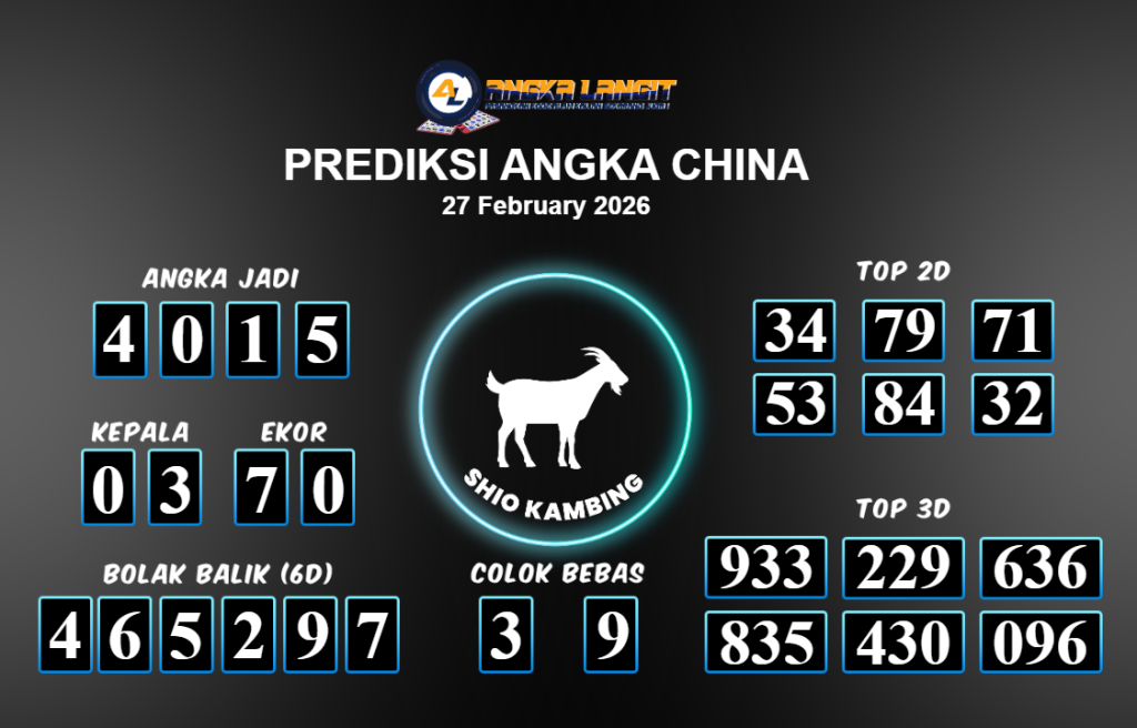 Prediksi ANGKA LANGIT memberikan banyak data akurat untuk togel online, termasuk prediksi China hari ini. Sebelum anda memasang angka 2D jitu untuk China hari ini, sebaiknya luangkan waktu untuk mengunjungi forum prediksi China. Kami akan membagikan informasi tentang China hari ini yang sangat layak untuk dicoba. Bagi Anda yang telah membaca prediksi akurat dari Angka Langit untuk China hari ini dan merasa sesuai, segera pasang angka tersebut di situs togel online Angkatoto138 dan sudah menjadi tempat bermain Anda selama ini.