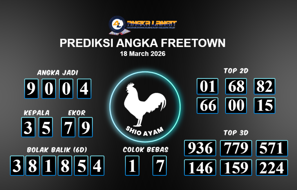 Prediksi ANGKA LANGIT memberikan banyak data akurat untuk togel online, termasuk prediksi Freetown hari ini. Sebelum anda memasang angka 2D jitu untuk Freetown hari ini, sebaiknya luangkan waktu untuk mengunjungi forum prediksi Freetown. Kami akan membagikan informasi tentang Freetown hari ini yang sangat layak untuk dicoba. Bagi Anda yang telah membaca prediksi akurat dari Angka Langit untuk Freetown hari ini dan merasa sesuai, segera pasang angka tersebut di situs togel online Angkatoto138 dan sudah menjadi tempat bermain Anda selama ini.