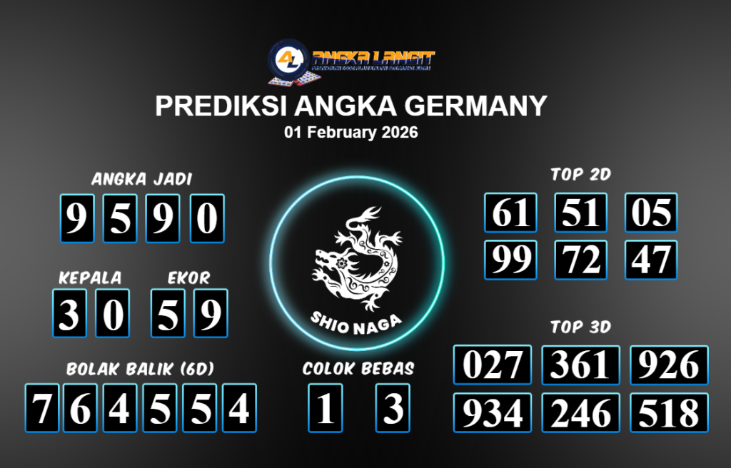 Prediksi ANGKA LANGIT memberikan banyak data akurat untuk togel online, termasuk prediksi Germany hari ini. Sebelum anda memasang angka 2D jitu untuk Germany hari ini, sebaiknya luangkan waktu untuk mengunjungi forum prediksi Angka Langit. Kami akan membagikan informasi tentang Germany hari ini yang sangat layak untuk dicoba. Bagi Anda yang telah membaca prediksi akurat dari Angka Langit untuk Germany hari ini dan merasa sesuai, segera pasang angka tersebut di situs togel online Angkatoto138 dan sudah menjadi tempat bermain Anda selama ini.