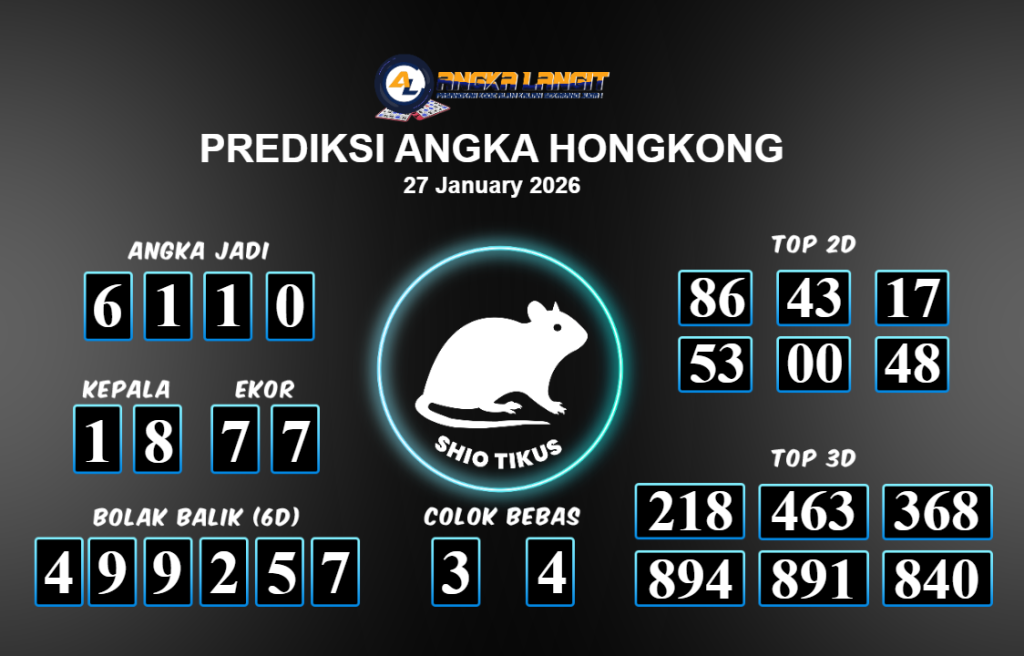 Prediksi ANGKA LANGIT memberikan banyak data akurat untuk togel online, termasuk prediksi Hongkong hari ini. Sebelum anda memasang angka 2D jitu untuk Hongkong hari ini, sebaiknya luangkan waktu untuk mengunjungi forum prediksi Angka Langit. Kami akan membagikan informasi tentang Hongkong hari ini yang sangat layak untuk dicoba. Bagi Anda yang telah membaca prediksi akurat dari Angka Langit untuk Hongkong hari ini dan merasa sesuai, segera pasang angka tersebut di situs togel online Angkatoto138 dan sudah menjadi tempat bermain Anda selama ini.