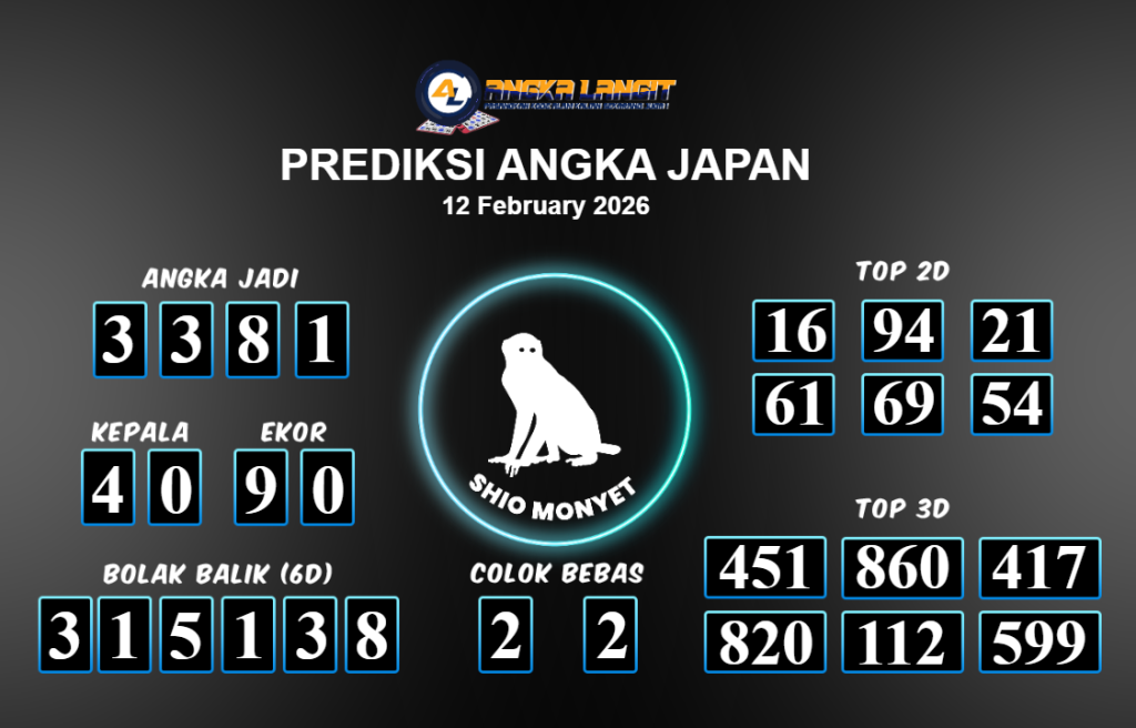 Prediksi ANGKA LANGIT memberikan banyak data akurat untuk togel online, termasuk prediksi Japan hari ini. Sebelum anda memasang angka 2D jitu untuk Japan hari ini, sebaiknya luangkan waktu untuk mengunjungi forum prediksi Japan. Kami akan membagikan informasi tentang Japan hari ini yang sangat layak untuk dicoba. Bagi Anda yang telah membaca prediksi akurat dari Angka Langit untuk Japanhari ini dan merasa sesuai, segera pasang angka tersebut di situs togel online Angkatoto138 dan sudah menjadi tempat bermain Anda selama ini.