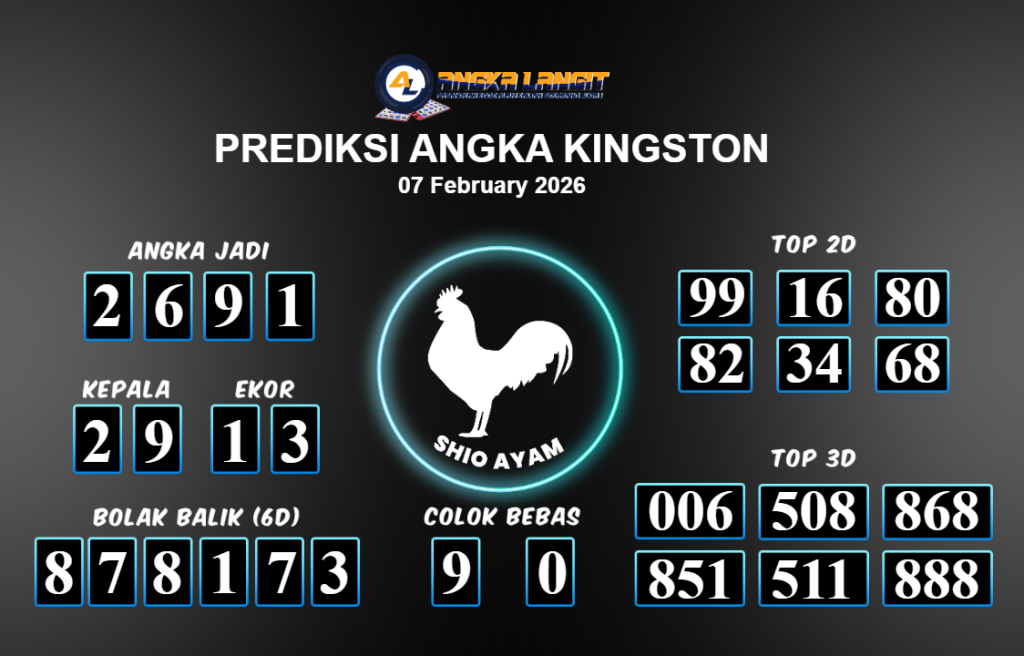 Prediksi ANGKA LANGIT memberikan banyak data akurat untuk togel online, termasuk prediksi Kingston hari ini. Sebelum anda memasang angka 2D jitu untuk Kingston hari ini, sebaiknya luangkan waktu untuk mengunjungi forum prediksi Angka Langit. Kami akan membagikan informasi tentang Kingston hari ini yang sangat layak untuk dicoba. Bagi Anda yang telah membaca prediksi akurat dari Angka Langit untuk Kingston hari ini dan merasa sesuai, segera pasang angka tersebut di situs togel online Angkatoto138 dan sudah menjadi tempat bermain Anda selama ini.