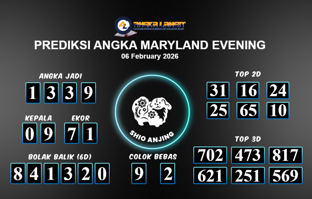 Prediksi ANGKA LANGIT memberikan banyak data akurat untuk togel online, termasuk prediksi Maryland Evening hari ini. Sebelum anda memasang angka 2D jitu untuk Maryland Evening hari ini, sebaiknya luangkan waktu untuk mengunjungi forum prediksi Angka Langit. Kami akan membagikan informasi tentang Maryland Evening hari ini yang sangat layak untuk dicoba. Bagi Anda yang telah membaca prediksi akurat dari Angka Langit untuk Maryland Evening hari ini dan merasa sesuai, segera pasang angka tersebut di situs togel online Angkatoto138 dan sudah menjadi tempat bermain Anda selama ini.