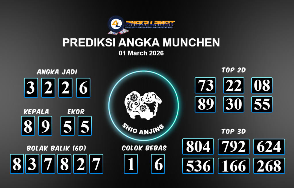 Prediksi ANGKA LANGIT memberikan banyak data akurat untuk togel online, termasuk prediksi Munchen hari ini. Sebelum anda memasang angka 2D jitu untuk Munchen hari ini, sebaiknya luangkan waktu untuk mengunjungi forum prediksi Munchen. Kami akan membagikan informasi tentang Munchen hari ini yang sangat layak untuk dicoba. Bagi Anda yang telah membaca prediksi akurat dari Angka Langit untuk Munchen hari ini dan merasa sesuai, segera pasang angka tersebut di situs togel online Angkatoto138 dan sudah menjadi tempat bermain Anda selama ini.