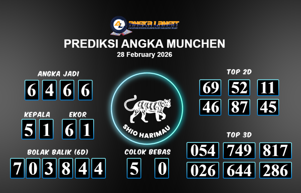 Prediksi ANGKA LANGIT memberikan banyak data akurat untuk togel online, termasuk prediksi Munchen hari ini. Sebelum anda memasang angka 2D jitu untuk Munchen hari ini, sebaiknya luangkan waktu untuk mengunjungi forum prediksi Munchen. Kami akan membagikan informasi tentang Munchen hari ini yang sangat layak untuk dicoba. Bagi Anda yang telah membaca prediksi akurat dari Angka Langit untuk Munchen hari ini dan merasa sesuai, segera pasang angka tersebut di situs togel online Angkatoto138 dan sudah menjadi tempat bermain Anda selama ini.