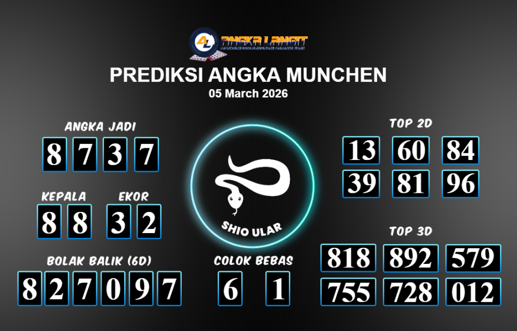 Prediksi ANGKA LANGIT memberikan banyak data akurat untuk togel online, termasuk prediksi Munchen hari ini. Sebelum anda memasang angka 2D jitu untuk Munchen hari ini, sebaiknya luangkan waktu untuk mengunjungi forum prediksi Munchen. Kami akan membagikan informasi tentang Munchen hari ini yang sangat layak untuk dicoba. Bagi Anda yang telah membaca prediksi akurat dari Angka Langit untuk Munchen hari ini dan merasa sesuai, segera pasang angka tersebut di situs togel online Angkatoto138 dan sudah menjadi tempat bermain Anda selama ini.