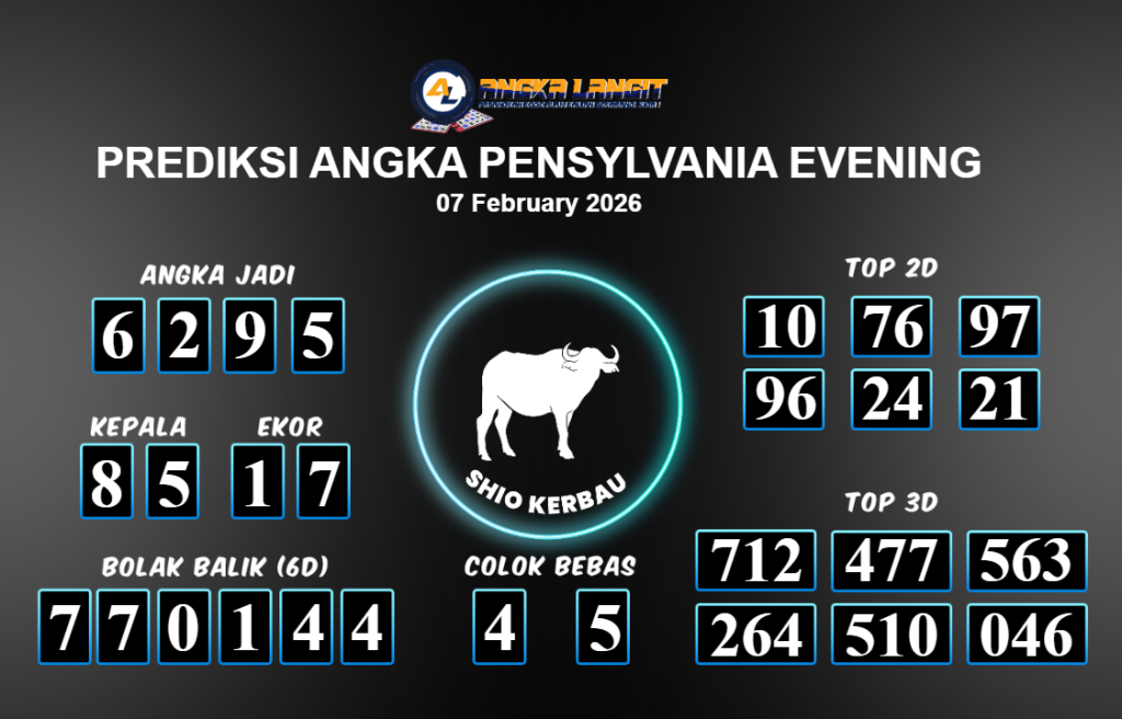 Prediksi ANGKA LANGIT memberikan banyak data akurat untuk togel online, termasuk prediksi Pensylvania Evening hari ini. Sebelum anda memasang angka 2D jitu untuk Pensylvania Evening hari ini, sebaiknya luangkan waktu untuk mengunjungi forum prediksi Angka Langit. Kami akan membagikan informasi tentang Pensylvania Evening hari ini yang sangat layak untuk dicoba. Bagi Anda yang telah membaca prediksi akurat dari Angka Langit untuk Pensylvania Evening hari ini dan merasa sesuai, segera pasang angka tersebut di situs togel online Angkatoto138 dan sudah menjadi tempat bermain Anda selama ini.