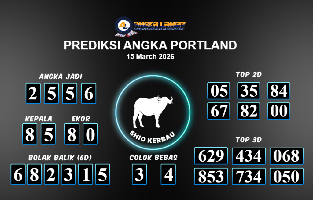 Prediksi ANGKA LANGIT memberikan banyak data akurat untuk togel online, termasuk prediksi Portland hari ini. Sebelum anda memasang angka 2D jitu untuk Portland hari ini, sebaiknya luangkan waktu untuk mengunjungi forum prediksi Portland. Kami akan membagikan informasi tentang Portland hari ini yang sangat layak untuk dicoba. Bagi Anda yang telah membaca prediksi akurat dari Angka Langit untuk Portland hari ini dan merasa sesuai, segera pasang angka tersebut di situs togel online Angkatoto138 dan sudah menjadi tempat bermain Anda selama ini.
